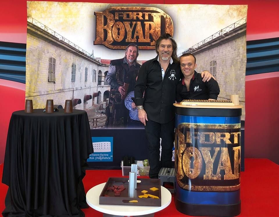 Installés avec leur décor de Fort Boyard, le comédien Passe-Muraille et le magicien Serge Avril de l'émission Fort Boyard animent n'importe quel lieu de passage.